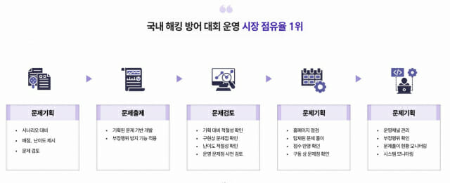 "최정상급 화이트 해커들의 실전 노하우를 체계화한 올인원 보안 교육 플랫폼이다. 특징을 보면 첫째, 실전형 훈련이다. 단순한 이론 중심 교육이 아니다. 실제 해킹 대회와 현장 경험을 바탕으로 만들었다. 실습형 교육과 워게임(War Game), CTF(Capture The Flag) 대회 등을 제공한다.