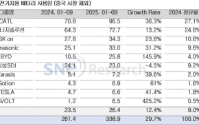 6일 SNE리서치에 따르면 올해 1월부터 9월까지 중국 제외 글로벌 지역에서 판매된 전기차(EV, PHEV, HEV)에 탑재된 총 배터리 총 사용량은 약 338.9GWh로 전년...