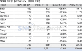 8일 시장조사업체 SNE리서치에 따르면 올해 1월부터 2월까지 글로벌 전기차(BEV+PHEV) 인도량은 약 228만1000대로 집계돼 전년 동기 대비 7% 감소한 것으로 나타났...