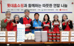 롯데홈쇼핑(대표 김재겸)은 지난 19일 연말을 맞아 영등포 지역 사회적 배려 계층 200세대에 팥죽과 백설기, 새해 응원의 의미를 담은 달력으로 구성된 '나눔 꾸러미'를 전달했...
