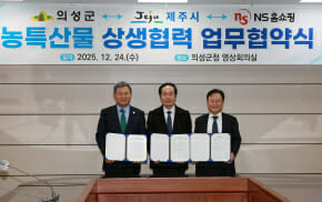 NS홈쇼핑이 지난 24일 의성군, 제주시와 함께 지역 우수 농특산물의 판로 확대와 마케팅 활성화를 위한 3자 업무협약(MOU)을 체결했다고 26일 밝혔다. 협약식은 12월 24...