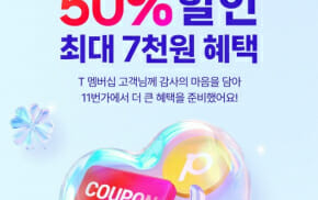 11번가가 SK텔레콤과 함께 T 멤버십 50% 할인 혜택을 제공하는 ‘T 멤버십 고객 감사제’ 행사를 한다.11월1일부터 10일까지 열흘간 진행...