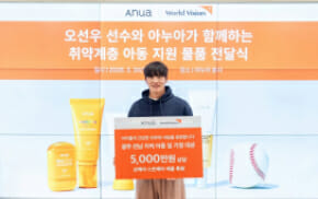더파운더즈의 뷰티 브랜드 아누아는 선케어 라인 모델인 문동주(한화 이글스), 오선우(KIA 타이거즈) 선수와 함께 취약계층 아동을 위한 1억 5000만원 상당의 물품 기부에 동...
