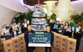 한국토요타자동차가 지난 13일 서울 잠실에 위치한 커넥트투에서 '2025 도서 기부 캠페인'을 통해 모인 약 1만2천700여 권의 도서를 비영리 독서진흥단체 '땡스기브'에 전달...