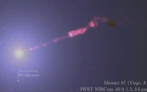 과학자들이 제임스웹 우주망원경(JWST)을 통해 지구에서 5천400만 광년 떨어진 거대 블랙홀 ‘메시에87(M87)’에서 분출되는 거대한 제트 ...