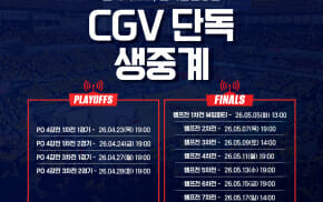 CJ CGV는 KBL, CJ ENM과 함께 '2025-2026 LG전자 프로농구 플레이오프'를 전국 주요 극장에서 단독 생중계한다고 17일 밝혔다. 이번 극장 생중계는 지난해 ...