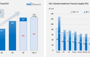 12일 SNE리서치에 따르면 지난해 1월부터 11월까지 전세계 전기차(EV, PHEV, HEV)에 투입된 양극재 총 적재량은 231만6천톤으로 집계됐다. 전년 동기 대비 36....