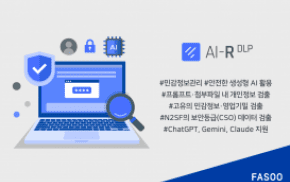 파수(대표 조규곤)가 민감정보 관리 솔루션 ‘AI-R DLP’의 신규 버전을 출시하며 AI 신규 시장 창출에 속도를 올린다.파수는 17일 챗GPT 등과 같은 생성형 AI 서비스 사용시 유출될 수 있는 개인정보는 물론 조직 고유의 민감정보까지 검출이 가능한 민감정보 관리 솔루션 ‘AI-R DLP’의 신규 버전을 출시했다고 밝혔다.이번 신규 버전 업데이트는 N2SF(국가 망 보안체계) 보안 정책...