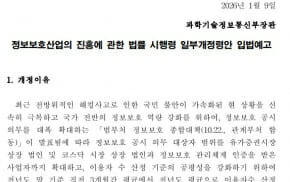 과기정통부가 '정보보호산업의 진흥에 관한 법률(이하 정보보호산업법) 시행령' 개정안을 이번달 9일부터 다음달 19일까지 40일간 입법예고한다.이 개정안은 국가 전반의 정보보호 역량 강화와 이용자 보호를 위해 정보보호 공시 의무 대상자를 확대했다. 최근 전방위적 해킹사고로 인한 국민 불안을 신속히 극복하고, 국가의 정보보호 역량 강화를 위해 지난 10월 관계부처 합동으로 발표한 ...