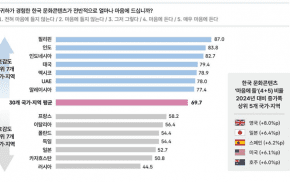 문화체육관광부(문체부)는 한국국제문화교류진흥원과 해외 30개 지역의 한국 문화콘텐츠 경험자를 대상으로 실시한 ‘2026 해외한류실태조사(2025년 기준)’ 결과를 발표했다고 30일 밝혔다.이번 조사에서는 지난해보다 싱가포르, 칠레, 폴란드 등 조사 지역을 추가하고 표본을 2만7400명으로 확대했다. 또한 캐릭터와 공연(케이팝 제외) 분야의 경험률과 인기도 문항을 새롭게 반영해 한류의 확장 범...