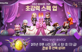 넷마블(대표 권영식, 도기욱)은 모바일 배틀로얄 MMORPG(다중접속역할수행게임) 'A3: 스틸얼라이브'의 2주년을 기념한 대규모 업데이트를 실시했다고 11일 밝혔다. 이번 업...