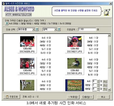 이번에 추가된 기능 중 가장 눈에 띄는 것은 ‘알See 사진 인화 서비스’다. 도구 모음에서 인화 주문 아이콘을 선택하고 원하는 이미지만 드래그 앤 드롭해 목록창으로 옮기면 자동으로 인터넷 사진관과 연결되어 사진 인화를 주문하고 이미지를 전송할 수 있다. 디지털 이미지의 인화를 위해 별도의 웹 사이트를 방문할 필요가 없으므로 디지털 카메라 사용자에게 특히 편리한 기능이 아닐 수 없다.