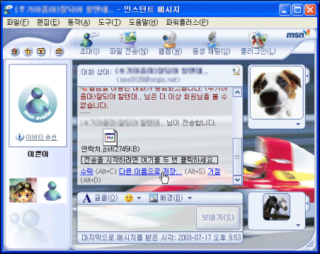 인스턴트 메시징(IM)으로 불리는 메신저는 말 그대로 즉석으로 메시지를 주고받기 편해야 한다. 이는 MSN 메신저가 그동안 인기 있었던 이유를 설명하는 말이기도 하다. 이번에 새로 업그레이드된 프로그램에서 필자가 편리하게 생각했던 것은 파일 전송부분이었다.