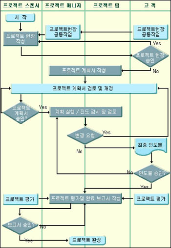 <그림 1>은 프로젝트 관리 업무의 전체 흐름을 다이어그램으로 표시한 것이다.