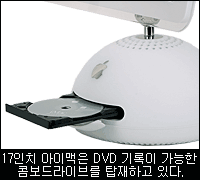 17인치 와이드스크린 디스플레이는 이번 아이맥 최고의 사양이다. 넓은 데스크톱 작업환경을 제공할 뿐 아니라 16:10 비율을 지원해 DVD 감상에 적합하다. 스파이더맨을 재생해본 결과 풍부하고 정확한 화질을 즐길 수 있었다.