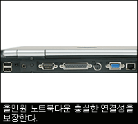 HP 컴팩의 NC8000은 기업용으로 설계된 노트북이다. 복고풍 스타일의 디자인이 사용자에 따라 불만스러울 수도 있지만 적어도 속도와 내구성만큼은 누구나 인정할 만 하다. 펌웨어 수준의 보안을 제공해 데이터를 보호할 수 있다. 마우스 콘트롤이 다소 답답하긴 하지만 키보드를 비롯한 기타 사용자 인터페이스도 우수한 편이다.