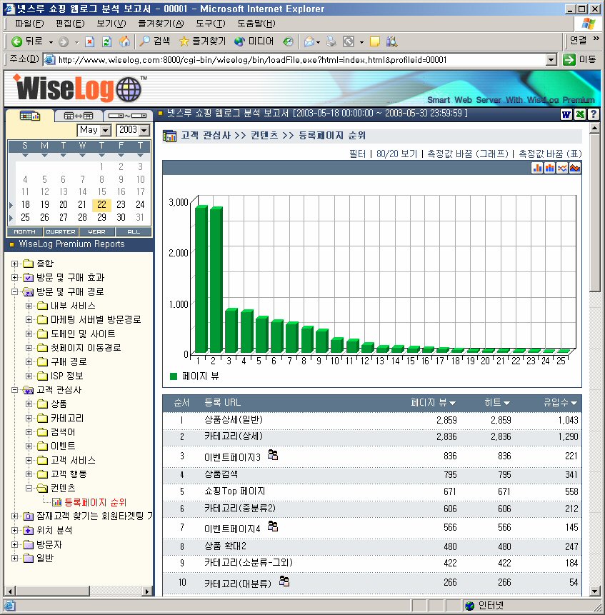 명성에 의존하여 외산 제품을 도입하고도 그 성능과 기능, 국내 시장 환경이 요구하는 독특한 운영 환경 때문에 불만족을 느끼는 고객들이라면 와이즈로그 프리미엄을 추천하고 싶다. 아마 일반적으로 생각하는 웹로그 분석기의 한계를 뛰어 넘는 풍부한 기능에 적잖게 놀랄 것이다.