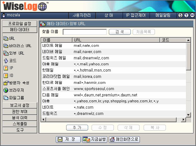 웹로그 분석기를 써 본 사용자들은 웹로그 분석을 설정할 때 반복되는 URL 입력 작업이 매우 성가시다는 경험을 해 보았을 것이다. 그러나 와이즈로그 프리미엄에서는 성가신 입력 작업은 한 번만 하면 된다.