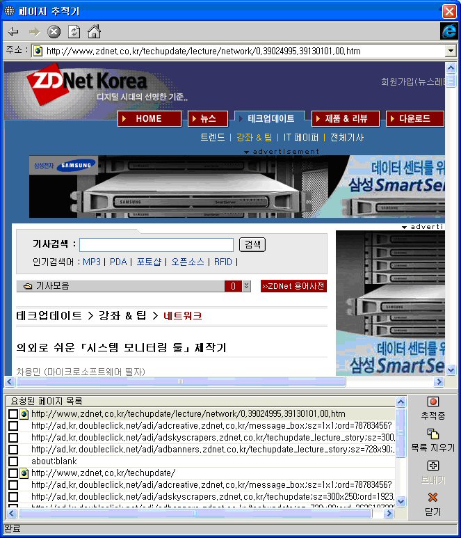 이 작업조차 성가시다면 와이즈로그 프리미엄에서 함께 제공하는 페이지 추적기를 사용할 수 있다. 분석 대상 웹 사이트를 네비게이션 하면 자동으로 URL을 추적해 주고, 드래그 앤 드롭 방식으로 손쉽게 URL을 등록할 수 있다.