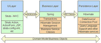 때마침 오라일리가 운영하는 OnJava.com에서 「Wiring Your Web Application with Open Source Java」라는 기사가 등록되었다. EJOSA는 WAS나 개발도구와 같은 오픈소스 도구들을 중심으로 통합이 이루어진데 반해, OnJava에 소개된 내용은 별도의 프레임워크로 이미 널리 알려져 있는 Struts, Spring, Hibernate를 통합하고자 시도하고 있다.