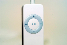 보급형 아이팟, 아이팟셔플은 몇 달 전 미국 샌프란시스코에서 열린 맥월드 2005에서 첫 선을 보였다. 자신감에 찬 스티브 잡스의 손에 들린 이 작은, 플래시 메모리를 닮은 네모반듯한 ‘껌’은 보급형이지만 여전히 아름답다.