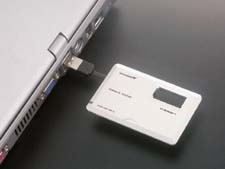 무엇보다도 이 제품의 가장 큰 특징은 명함 정도의 작은 크기이다. 일반 카드에 비해서 크기가 작아 휴대가 간편하다. 게다가 PC와 연결할 때 사용되는 USB 케이블은 미니B 커넥터이기 때문에 널리 사용되는 디지털 카메라, MP3 플레이어의 USB 케이블과도 호환된다.
