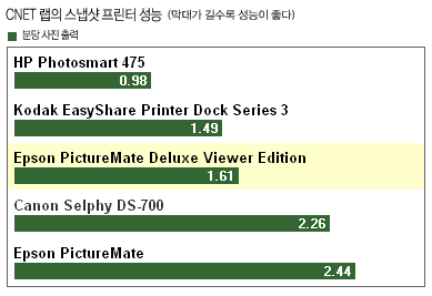 픽쳐메이트보다는 좀 가볍지만 이 HP 제품은 최고 품질에서 4x6 크기의 사진 출력은 105 초가 걸린다.
