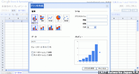 구글은 온라인상에서 워드프로세서 문서나 스프레드시트를 작성할 수 있는 서비스 「구글 독스 & 스프레드시트(Google Docs & Spreadsheet)」에 그래프 기능을 추가했다.
