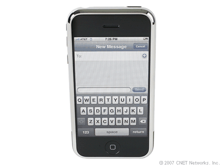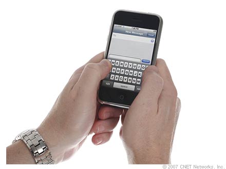 애플 아이폰은 문자 메시지와 이메일을 입력할 수 있는 가상 ‘쿼티(QWERTY)’ 키보드가 특징이다. 인공 지능 센서가 장착되어, 정확한 단어나 문자의 입력을 제시하기 때문에 오타를 바로잡을 수 있다.