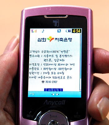 모바일을 활용한 금융 서비스가 확대되고 있다. 14일 프리원에프티는 별도 칩을 핸드폰에 설치하지 않고 무선인터넷 만으로 대출서비스를 받을 수 있는 ‘모바일 론’을 출시했다고 발표했다.