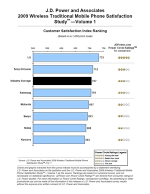 또한 LG전자는 제이디파워가 올해 처음 발표한 '2009 스마트폰 고객 만족도 조사'에서도 772점을 기록, 791점을 받은 애플에 이어 2위에 올랐다.