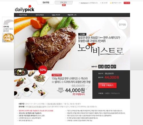 이러한 전면 구성은 위메프가 시도하면서 인기를 끈 디자인 구성으로 마치 잡지책을 보는 듯한 느낌을 소비자에게 전달하는 장점이 있다. 이번 데일리픽의 디자인 리뉴얼의 경우 레스토랑 가이드의 느낌이 물씬 풍기며 앞으로 소셜커머스 업계에 큰 반향을 가져올 것으로 예상된다.