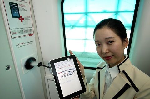 KT(대표 이석채)는 코레일공항철도(대표 허준영·하승열)에서 운영하는 인천국제공항-서울역 간 직통열차에 서 KT의 태블릿PC인 ‘K패드(아이덴티티탭)’를 이용해볼 수 있는 ‘올레패드 체험석’을 구축 했다고 29일 밝혔다.