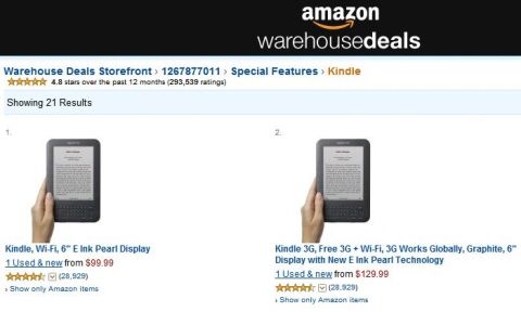 한편 반품된 제품을 판매하는 아마존 홈페이지의 ‘웨어하우스딜(warehouse deals)’에는 현재 킨들2의 리퍼 제품이 89.99달러(약9만6천원) 가격에 팔리고 있다.