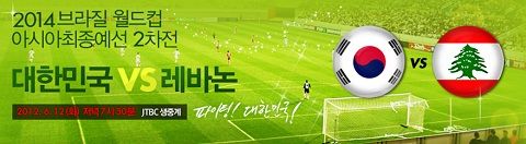 JTBC는 12일 생중계한 한국과 레바논의 2014 브라질 월드컵 아시아 지역 최종예선 경기 방송이 AGB닐슨 수도권 유료방송 가입가구 기준 7.9%의 시청률을 기록했다고 밝혔다. 또 다른 기관인 TNmS의 조사결과로는 경기 전체 평균 시청률이 10.27%에 달하는 것으로 나타났다.