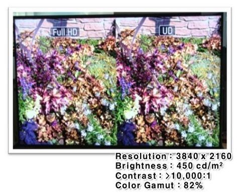 UD TV는 가로x세로 화소수가 최대 4,096x2,160에 이르는 초고해상도 TV로 현행 규격인 풀HD(1,920×1,080 픽셀)보다 해상도가 4배 이상 높은 차세대 기술이다.
