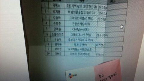언뜻 보기에도 방송 큐시트처럼 짜인 표에 CJ E&M 회사 명함이 노출돼 있어 깜빡 속기 십상이지만, 이 사진은 허위로 조작된 것으로 드러났다. CJ E&M 관계자는 “인터넷 상에 돌아다니는 톱10 명단은 전혀 사실이 아니다”고 말했다.