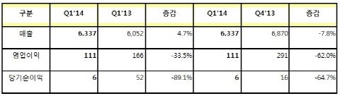 매출은 전년 동기 대비 4.7% 증가했고, 영업익과 당기순익은 각각 33.5%, 89.1% 감소했다.