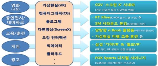 이를 위해 디지털 기술 패러다임 변화에 맞춰 세계시장을 선도할 수 있는 가상현실, 컴퓨터그래픽, 홀로그램, 오감 인터랙션, 유통기술 등 5대 기술을 개발해 글로벌 플랫폼과 표준을 선점할 계획이다.