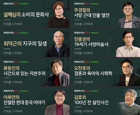네이버에 따르면 파워라이터ON은 저명한 학자들이 네이버캐스트에 각종 콘텐츠를 올려주는 서비스다. 이날부터 30주 동안 매일 한 편씩 연재되는 시즌2에서는 지식 대중화에 앞장서고 있는 주경철, 설혜심, 최덕근, 진중권, 류동민, 오찬호, 이욱연, 김호의 지식 콘텐츠를 만나볼 수 있다.