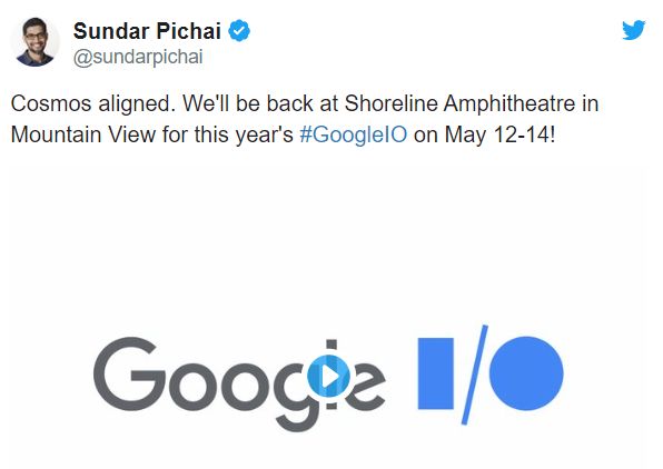 선다 피차이 알파벳 CEO는 자신의 트위터 계정을 통해 2020년 구글 I/O 일정에 대해 이같이 밝혔다.