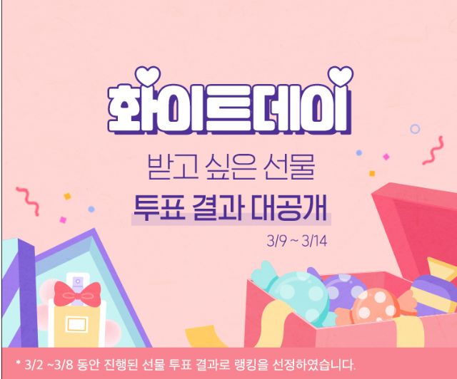 화이트데이 대표 선물로 손꼽히는 초콜릿, 사탕부터 뷰티제품, 액세사리 등 다양한 상품들 중 화장품이 1위를 차지해 눈길을 끌었다. 2위는 주얼리, 3위는 향수가 차지했다.
