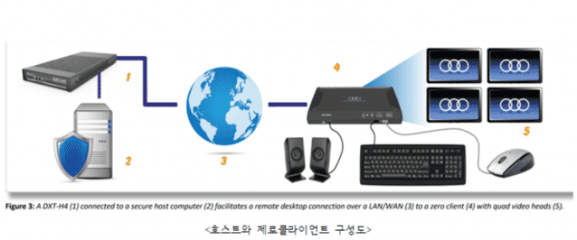 Teradici Tera2321 PCoIP 프로세서(512MB DDR3 RAM)가 장착돼 지연 없는 고품질의 모니터 화면을 DXT-H4 호스트에서 전송받을 수 있다. 최소 100Mbps이상 인터넷 속도를 지원하는 재택환경이라면 DXZC에 모니터, 키보드, 마우스를 연결, DXT-H4 호스트를 통해 회사에 있는 컴퓨터를 제어할 수 있고 재택근무자에게 실제 컴퓨터로 작업하는 것과 같은 경험을 제공한다고 회사는 설명했다.