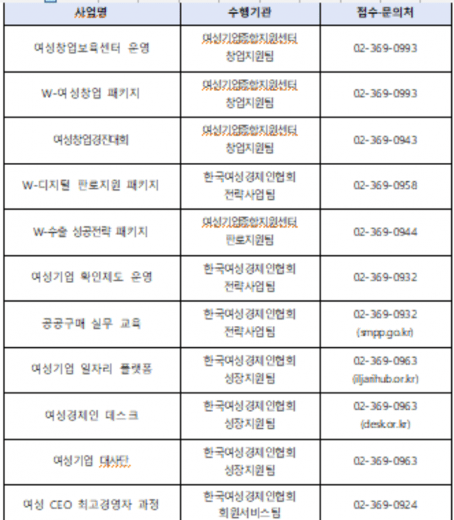통합공고 세부 내용은 여성기업 포털(www.wbiz.or.kr)과 중기부 누리집 사업공고(www.mss.go.kr)에서 확인할 수 있다. 세부 사업공고는 여성기업 육성사업을 수행하는 한국여성경제인협회와 여성기업종합지원센터에서 개별 공고한다.