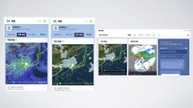 네이버는 글로벌 기상사업자인 웨더뉴스의 기상예측 분석, 항공사진 등과 더불어 예보 영상을 함께 제공해, 영상으로 태풍의 영향권 등을 살펴볼 수 있도록 했다.