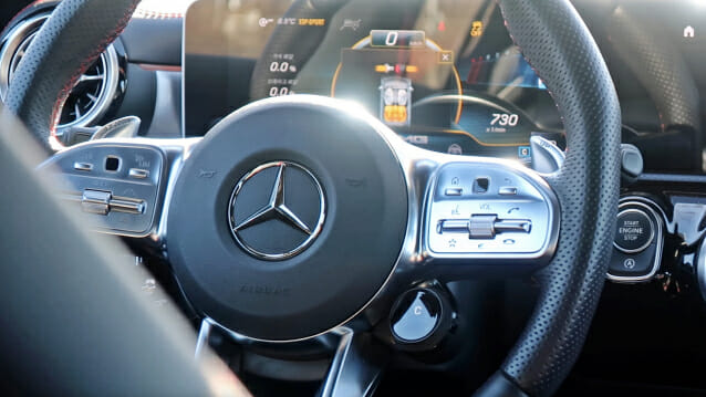 실내는 기본형인 CLA 250 4매틱과 크게 다르지 않다. AMG 스티어링 휠을 장착하고 AMG 계기판을 적용한 것이 차이라면 차이.