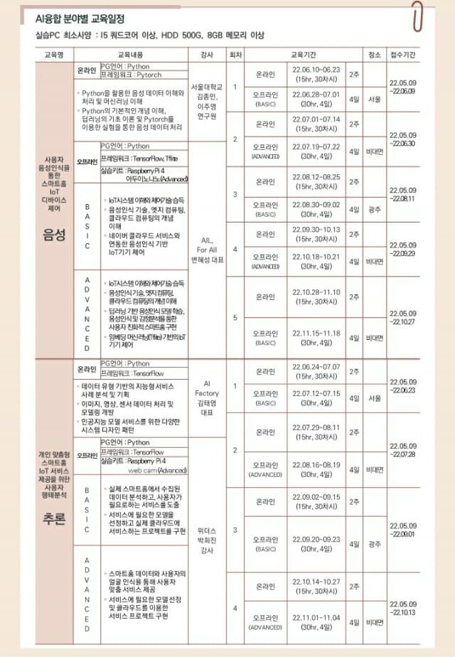 지능정보산업협회는 "산학연 전문가와 함께 음성, 영상, 추론, BM(Business Model) 등 네개 분야로 구성한 교육내용을 마련했다"고 밝혔다.