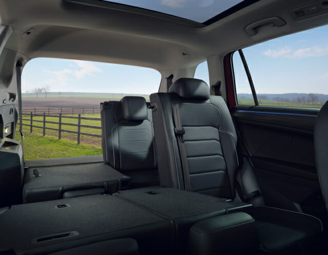 크기가 큰 만큼 실내 공간도 넓다. 좌석 배열 역시 일반적인 2+3가 아닌 '2+3+2' 구성이다. 제원상 최대 7명이 앉을 수 있다. 동급 중 유일하다. 단, 3열은 성인 남성이 오래 앉아 있기에 다소 무리가 있다. 머리공간은 여유롭지만, 무릎공간이 좁다. 트렁크 공간은 기본 230리터고, 2·3열 좌석을 모두 접으면 최대 1천775리터로 늘어난다. 자전거 등 부피가 큰 짐을 거뜬히 싣고 나를 수 있다. 참고로 기존 티구안 트렁크 적재 용량은 615~1천655리터다.
