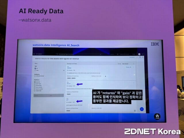 또 기업마다 사용하는 고유 용어나 내부 코드도 맞춤형으로 묶는다. 이 상무는 "데이터 인텔리전스 과정에서 이런 용어를 수동 큐레이션 해 표준화한다"며 "AI가 해당 기업 맥락을 더 정확히 이해하도록 만든다"고 강조했다.