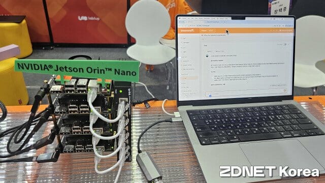 현장에서는 실제 폐쇄망 환경에서도 오픈소스 모델 '잼마3'를 독립적으로 운영할 수 있는 소규모 장비를 시연했다.